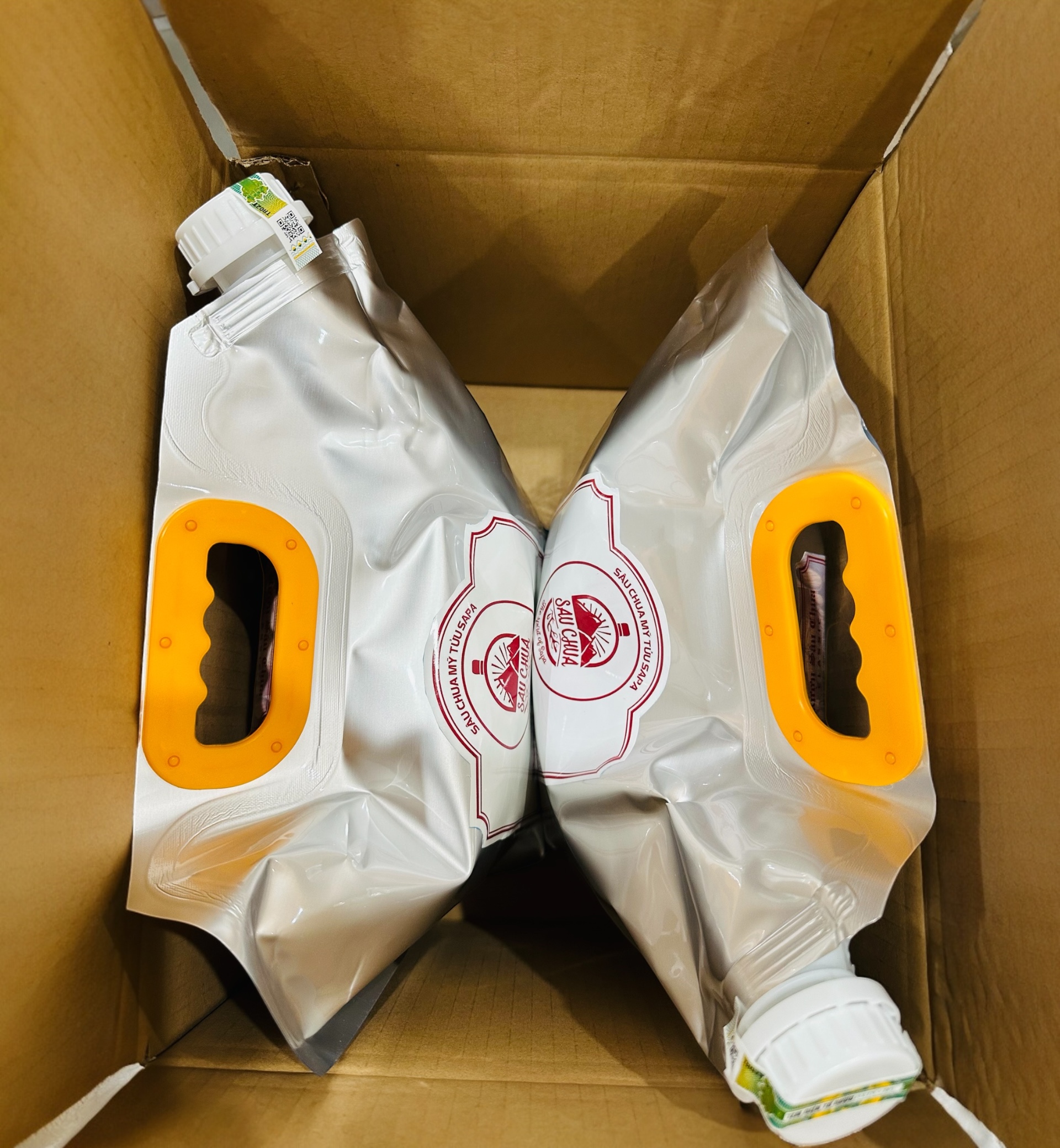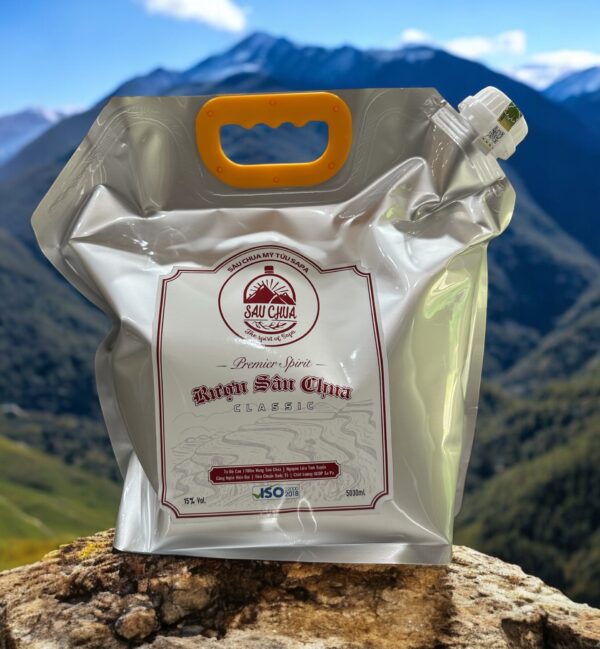 Rượu Sâu Chua bịch 5L được làm hoàn toàn từ nguyên liệu Tây Bắc: ngô nương, mật ong, men rượu, nguồn nước tinh khiết từ núi cao Sapa.