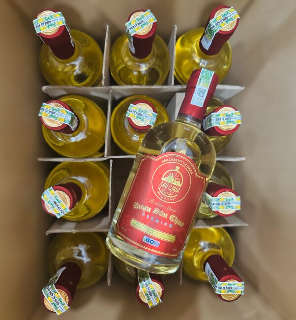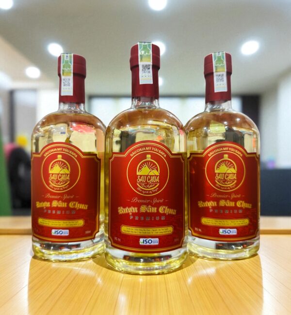 Rượu Sâu Chua Premium chai 500ml được làm hoàn toàn từ nguyên liệu Tây Bắc: ngô nương, mật ong, men rượu, nguồn nước tinh khiết từ núi cao Sapa, sau đó được ủ trong thùng gỗ sồi để cho ra màu sắc vàng đẹp tự nhiên và hương thơm nhẹ đặc trưng của dòng rượu ủ sồi di sản.
