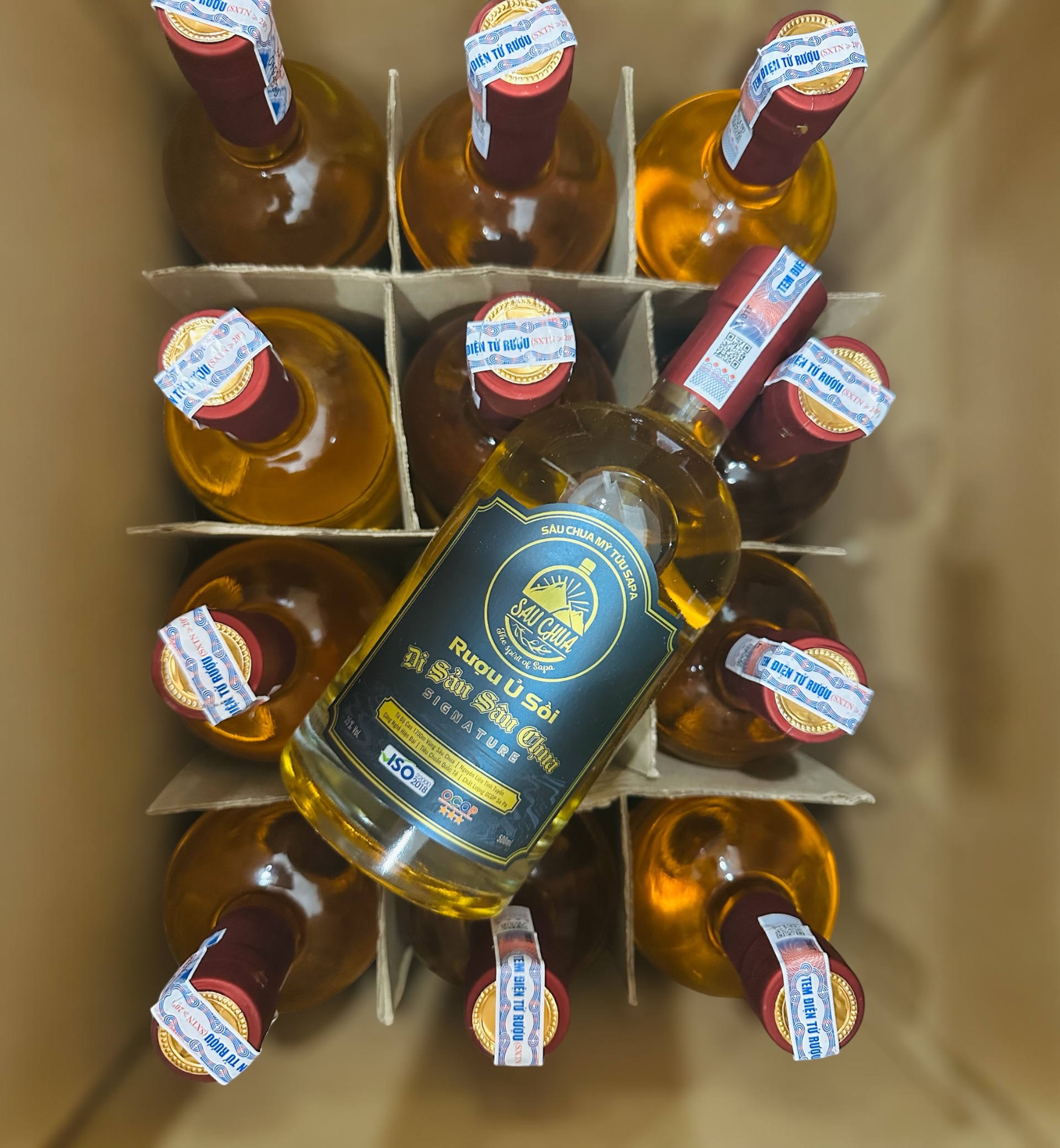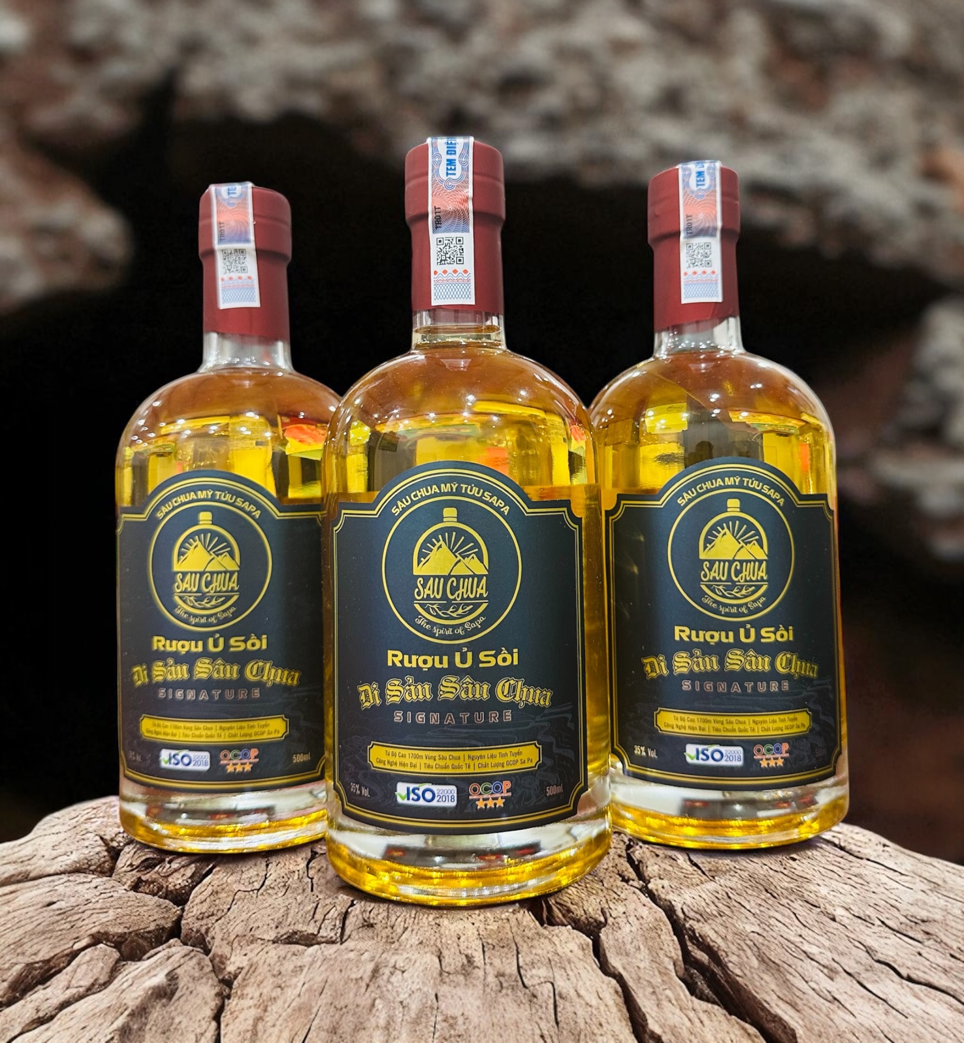 Rượu ủ sồi Di sản Sâu Chua chai 500ml được làm hoàn toàn từ nguyên liệu Tây Bắc: ngô nương, mật ong, men rượu, nguồn nước tinh khiết từ núi cao Sapa, sau đó được ủ trong thùng gỗ sồi hàng năm trời để cho ra màu sắc vàng óng tự nhiên và hương thơm lôi cuốn đặc trưng của dòng rượu ủ sồi di sản. Sản phẩm đạt chứng nhận OCOP 3 sao của Sapa năm 2025.