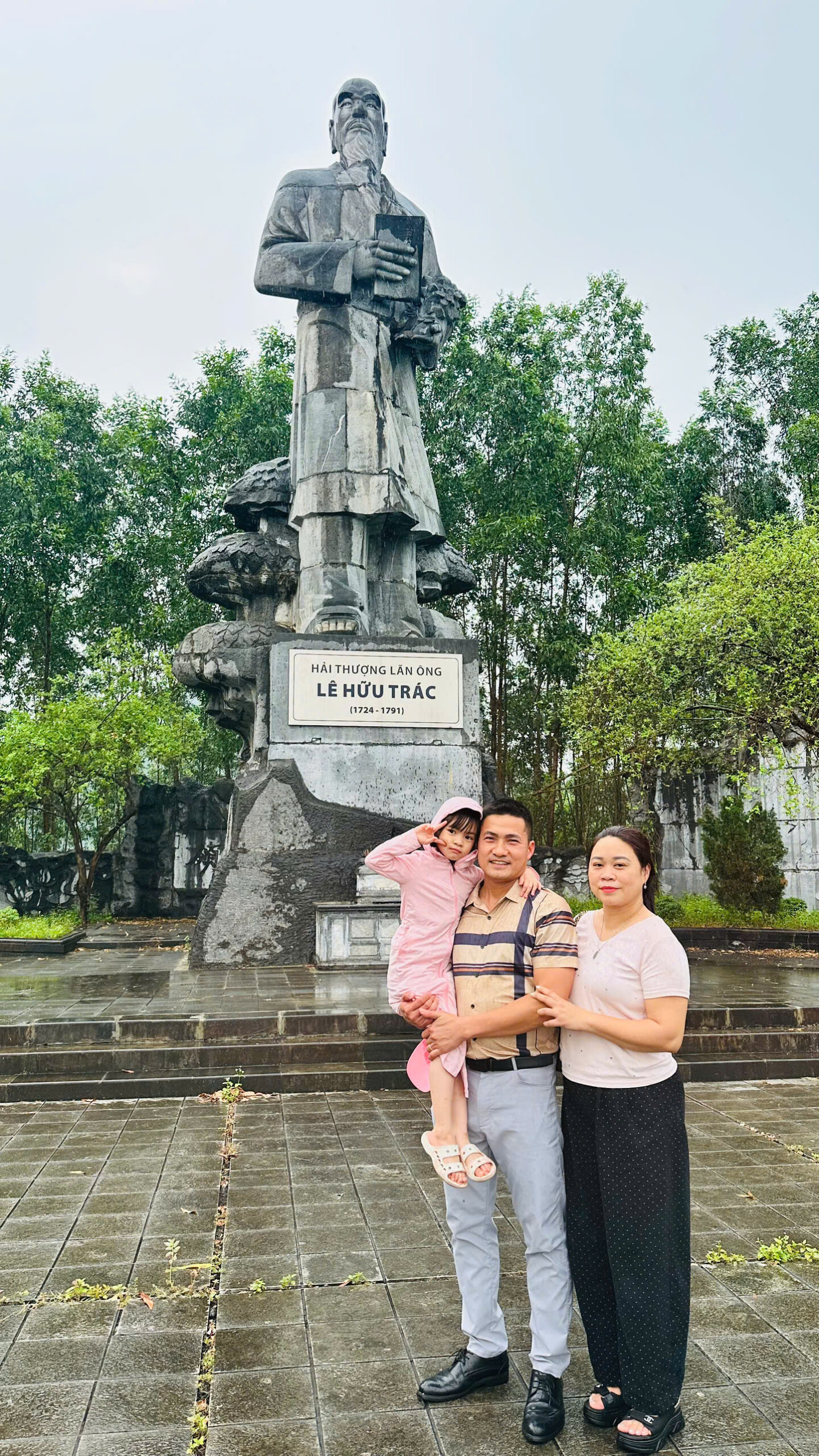 Khi xe vừa dừng bánh trước sân khu di tích Khu di tích Hải Thượng Lãn Ông, trời bất ngờ đổ mưa, hạt mỗi lúc một nặng. Cả đoàn mình không ai mang theo ô, đứng loay hoay giữa sân, nhìn con đường dẫn lên khu mộ Hải Thượng Lãn Ông chờ mưa tạnh để vào viếng cụ.